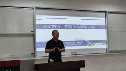 赵裕民以《坚定前行,在就业与深造之间……》为题,从求职准备及行动和考研动机及准备两个方面进行了培训讲解。他分析了近年来学校的就业形势和毕业生的就业情况,强调大家首先要做好思想情感准备,与家人充分沟通协商,确定求职共识,并做好决策信息准备,提前了解之前毕业生就业去向,在深造与就业、出国、考公等选择中确定适合自己的未来发展方向,合理指定职业生涯发展规划。同时,他为大家解答了有关如何做好考研准备的问题和现阶段的时间规划,教育引导学生们准确把握当前考研形势安排好时间,提前做好充分的准备。