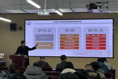 陈昊紧扣立德树人主题,分析了研究生教育基本情况。他指出,现阶段研究生学位论文问题主要集中在论文选题偏移、论文创新性不足以及论文规范性欠缺等方面,针对这些问题,他提出要鼓励研究生在选题前进行充分调研和论证,确保论文选题的的科学性、前沿性和实用性,同时要加强对研究生的论文写作规范培训,引导研究生合理组织论文结构,要求导师们加强对研究生学位论文撰写的指导和监督,确保研究生按照学校的规定和要求进行论文撰写。此外,陈昊着重介绍了学位论文的相关答辩流程和评阅办法,督促各导师要严格控制时间节点,合理安排学生阶段学习任务,保时保质保量地完成学位论文撰写。