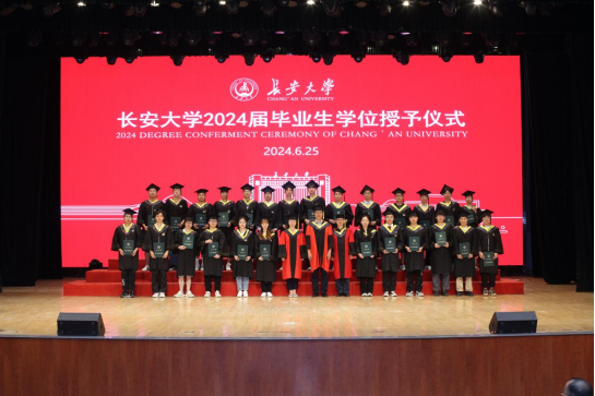 学位授予仪式上,2024届毕业生们身穿学位服依次上台,学院学位评定分委员会陈昊教授、段晨东教授、耿莉敏教授为他们逐一拨穗授位,颁发学位证书。