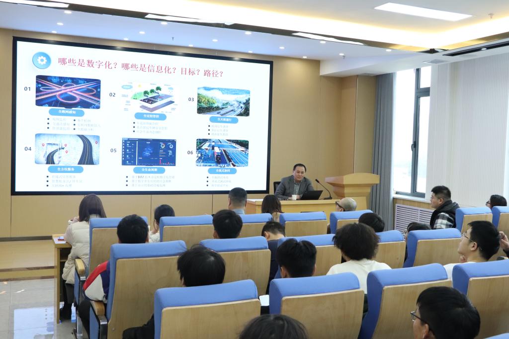 王建伟从新型数字基础设施建设、发展数字经济以及推进数据赋能交通发展等高质量发展的新动能切入,立足交通新基建发展的政策背景,剖析了公路新基建的演进趋势与需求,阐明了数字化和交通基础设施数字化等重要概念的内涵,在此基础上围绕公路基础设施数字化的理论基础与发展路径、应用领域与关键技术和未来发展与展望进行了系统全面的讲授,希望同学们充分利用学校的资源平台,深入了解和把握产业行业的发展现状和未来趋势,为建设交通强国贡献“长大青年”的智慧和力量。