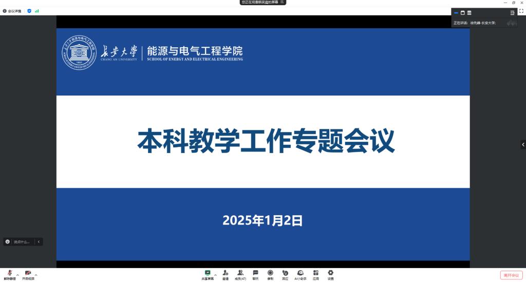 为贯彻学校关于严肃考风考纪,推进专业、课程、教材建设,做好实践教学和创新创业工作等会议精神,买球官方网站于2025年1月2日下午以线上会议的形式召开了本科教学专题会议,向学院教师强调期末考试命题、监考、阅卷等事宜。院长陈昊以及学院全体教师参加了此次会议,会议由教学副院长徐先峰主持。