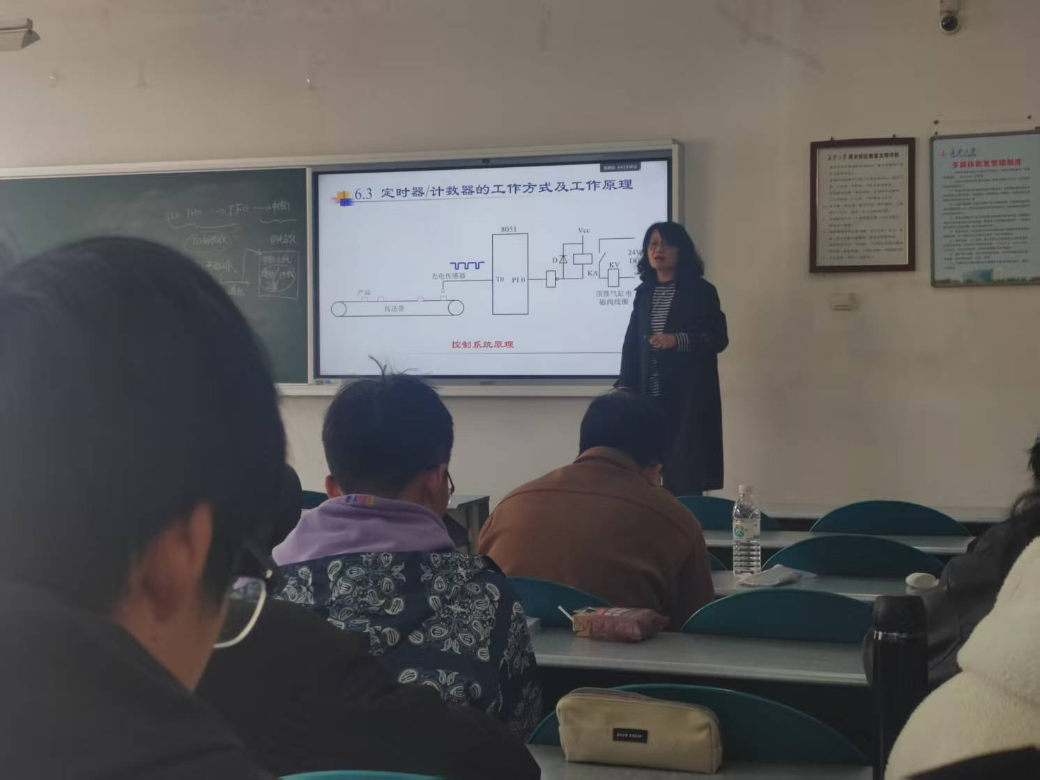 在课堂教学过程中,《计算机原理与应用》任课教师胡欣教学思路清晰,由浅入深,细致入微,注重知识连贯性与实践细节引导。通过合理利用板书和PPT,清晰梳理课堂重点,精准把握课堂节奏。《电动汽车技术》任课教师郭金刚教学逻辑严谨、语言表达生动、教学策略灵活。通过生动的图文将抽象的原理具象化,并结合工程研发实例进行生动讲解,激发学生的求知欲和积极性。