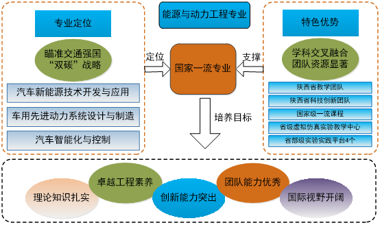 能源与动力工程专业依托陕西省交通新能源开发、应用与汽车节能重点实验室、全国醇醚燃料及醇醚清洁汽车专业委员会西安试验检测中心等省部级教学科研实验平台,“节能与新能源汽车”省级虚拟仿真实验教学中心,为汽车新能源技术开发与应用、车用先进动力系统设计与制造、汽车智能化与控制等领域高素质人才的培养提供了有力保障。