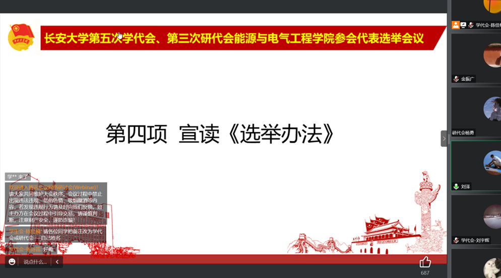 12月2日晚,买球官方网站通过线上方式举办买球官方网站第五次学生代表大会、第三次研究生代表大会参会代表选举会议。院党委副书记倪凤英,院团委书记金振广,学生会指导老师刘泽,研究生会指导老师宿雨心出席本次会议,参加会议还有本科生代表和研究生代表。会议由买球官网学生会执行主席陈佳楠主持。