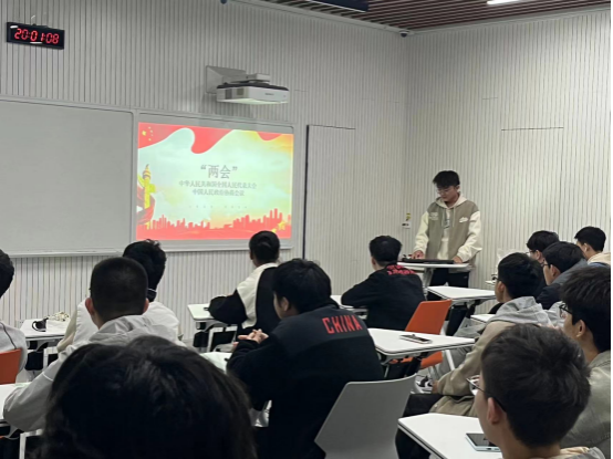 对于刚刚结束的全国两会,团支书首先介绍了两会的基本情况和重要议题,强调了学习两会内容的重要性和意义,并要将其融入到日常学习和生活中。同时指出,作为时代新青年的学生们,要积极学习两会内涵,践行两会精神,努力学习,成为祖国发展的栋梁之才。团支书发言完毕后同学们分组讨论,就两会提到的国家发展情况、未来发展热点等话题进行了深入交流,分享了自己的看法和理解。