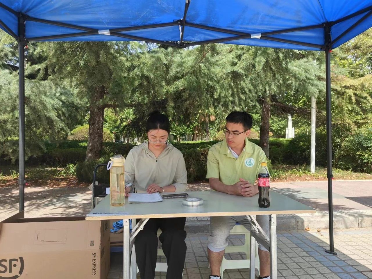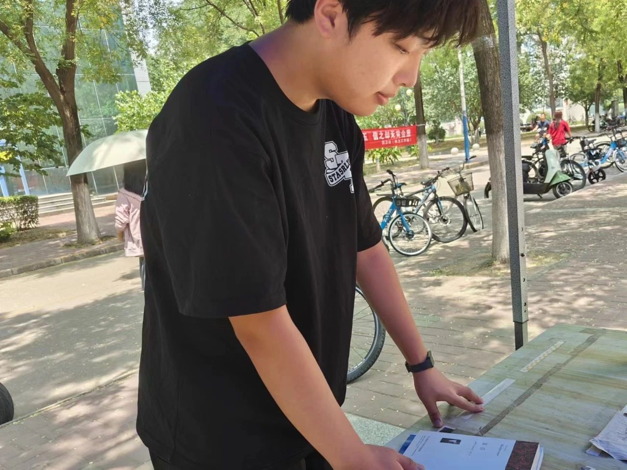 6月19日上午9点,青志队的志愿者们布置好活动现场迎接每一位爱心捐赠者的到来。志愿者们分工协作,保证此次捐赠活动有条不紊地进行。志愿者们认真接待每一位捐赠者,细致地整理捐赠的衣物,热心地为参与活动的师生解答疑惑。