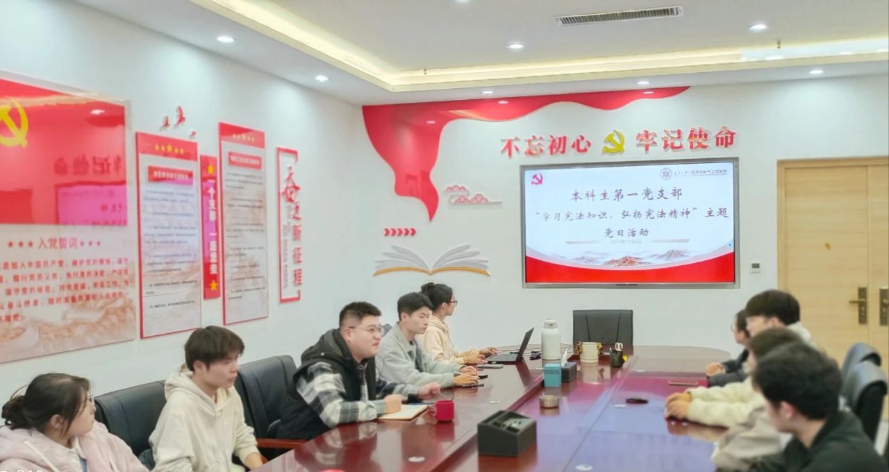 2024年12月4日,是我国第十一个国家宪法日。12月1日至7日是第七个“宪法宣传周”。为学习弘扬宪法精神,教育引导学生党员深刻领会宪法的重要地位和重大意义。买球官方网站本科生第一党支部于12月4日晚在明德园扶轮大厦608党建活动室开展“学习宪法知识,弘扬宪法精神”主题党日活动。本次活动由党支部书记刘泽主持,支部全体党员参加。