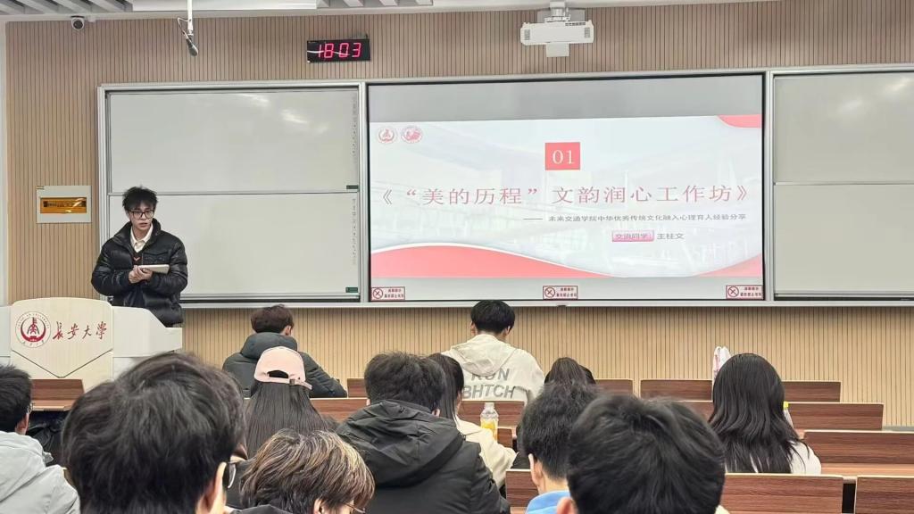 2024年全国心理委员论坛副主席、未来交通学院2021级本科生王桂文进行经验分享。他以“遇见心理学家”心理沙龙、“美的历程”文韵润心工作坊为例分享品牌活动经验,对未来两院心理协会之间的合作表达了美好的期待,希望能够共同策划更多针对学生心理健康的活动,进一步提高心理健康教育的影响力,推动心理学知识的传播,共同培养学生的心理素质和幸福感。