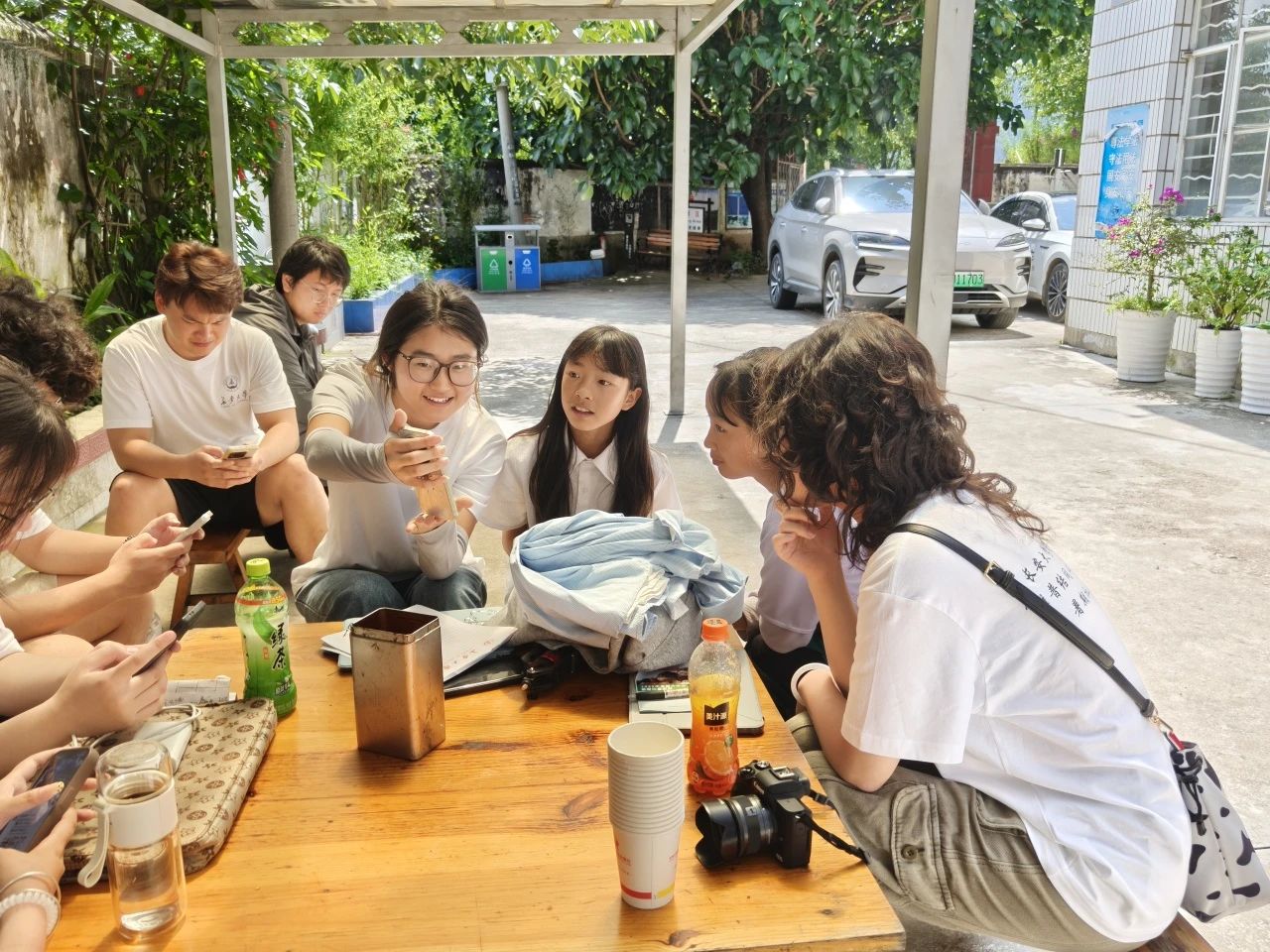 讲座结束后,实践队员们还与村中两名六年级女孩展开了一场温馨而真挚的交流。队员们如同亲切的兄姊,拉起女孩们的手,轻声询问她们的学习生活、兴趣爱好和心中梦想。“我想当一名警察,保护身边的人。”一位扎着马尾辫的女孩眼神坚定地表达了自己的志向。另一位稍显腼腆的女孩则轻声诉说着对外面世界和大学生活的向往。队员们拿出手机展示大学校园的图片,生动描绘图书馆的静谧、课堂的思辨、社团的活力与实验室的探索,鼓励她们:“只要坚持努力,你们一定能走进这样的校园。”队员们不仅留下了联系方式,承诺长期关注她们的成长、解答学习困惑,更在女孩们纯真的心田悄然播下了名为“大学”的希望种子。阳光透过树叶洒在孩子们洋溢着憧憬的笑脸上,这一刻,梦想的光芒被点亮,一场心灵的相遇为乡村孩子的成长之路注入了温暖的动力。