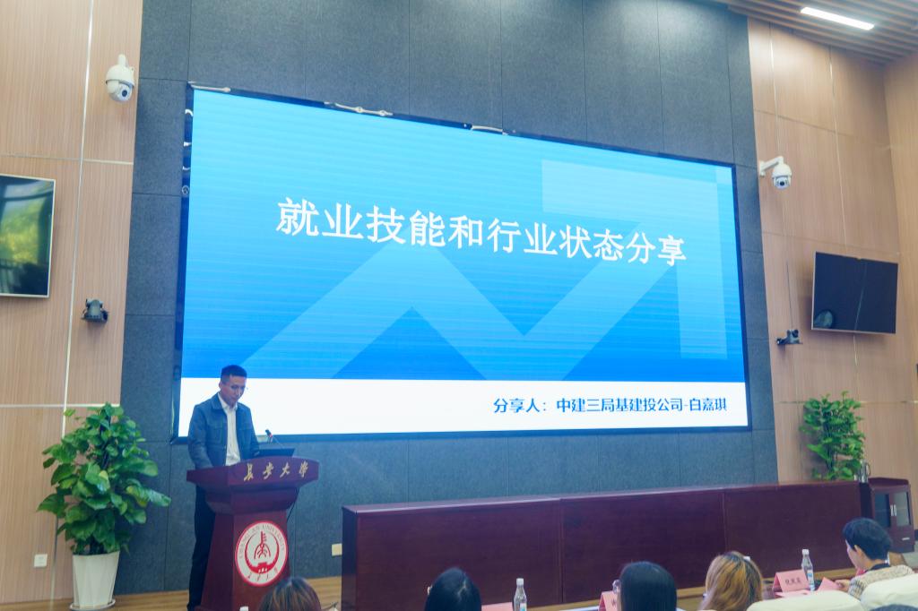 中建三局基建投公司西北公司人资部负责人白嘉琪就行业发展趋势与就业形势进行了深入分析,以建筑行业为例为同学们进行详细讲解,并从企业人力资源视角分享了简历筛选标准和面试评价维度,建议毕业生既要夯实专业基础,也要提升综合素养,提前做好职业规划,从容应对就业市场挑战。