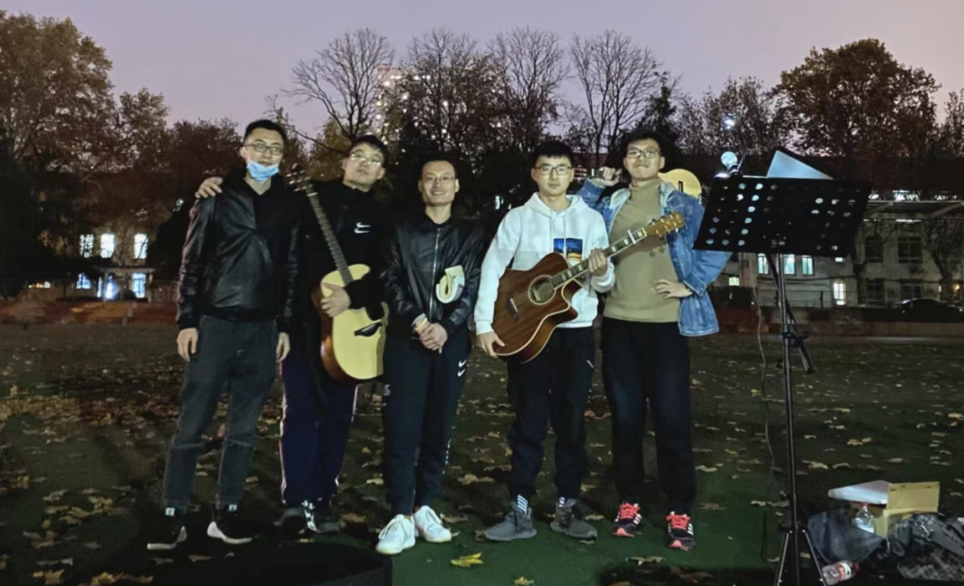 在操场上进行吉他演奏