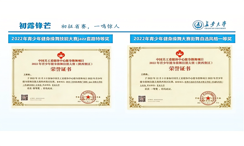 2023年6月,面对即将到来的陕西省大学生健美操艺术体操啦啦操街舞及校园健身操舞锦标赛,作为新任的买球官方网站街舞队队长,王睿涵带领学校街舞队刻苦排练,最终获得此次锦标赛Hip-hop套路第一名,同时还斩获了锦标赛自编套路第三名的好成绩。此后在她的带领下,买球官方网站街舞队陆续斩获了2023年陕西省街舞公开赛团体齐舞(高校组)二等奖、2024年陕西省街舞公开赛亚军等省级奖项。