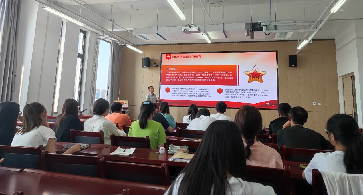 为深入学习贯彻习近平总书记关于党纪学习教育的重要讲话和重要指示精神,推动党纪学习教育扎实开展,6月17日下午16时,买球官方网站研究生第一党支部在明德园扶轮大厦612会议室开展以“党纪于心,守纪于行”为主题的教育专题党课,本次党课邀请院党委委员段晨东老师主讲,支部全体党员参加。