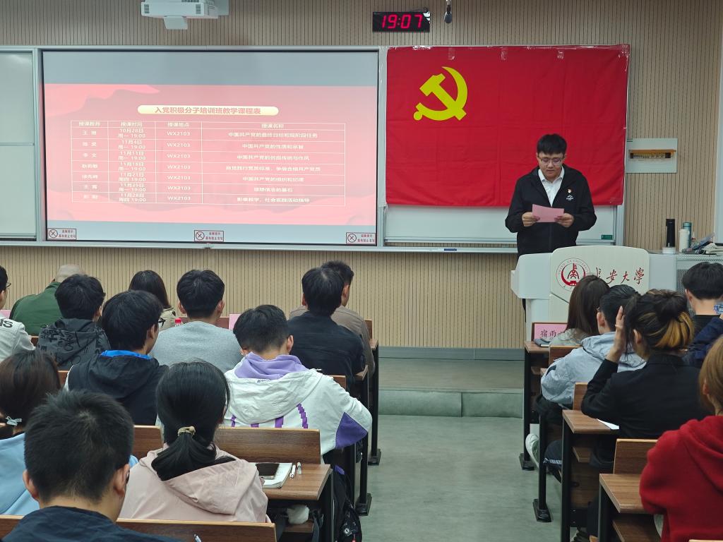 王霄宣读了入党积极分子培训班教学计划和学员考核及学习纪律规定。希望同学们严格遵守相关规定,认真学习党课内容,确保学习成效。
